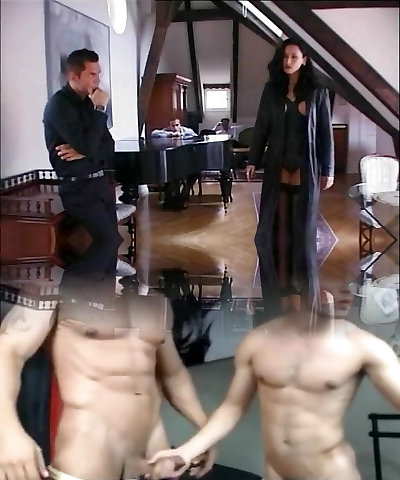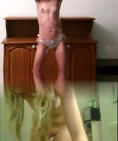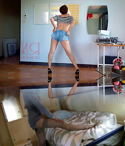 Regina Noir in denim shorts. Home striptease. Housewife shows her pussy. The depraved stepmother strips. knockers and