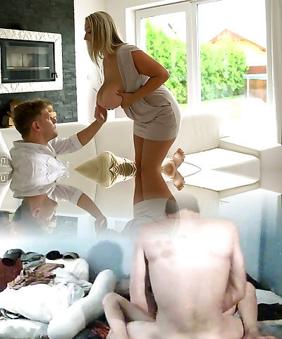 Astonishing buxomy MILFie sexpot Crystal Swift surprises man with morning titjob