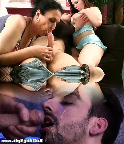 Voluptuous brunette with glasses is getting romped from the back and giving a tit-fucking to her guy