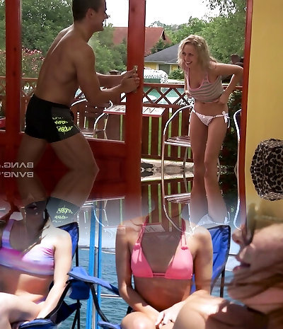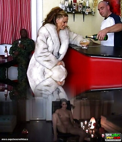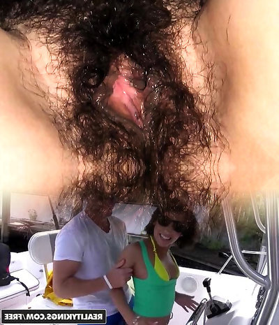 Thong-clad whore with long dark hair and humungous natural tits giving a stranger an awesome blowjob