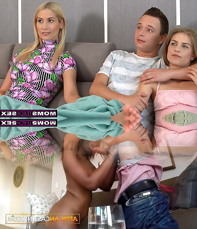 Busty step-mom helps her step-son-in-law to cum while she's girlfriend is totally exhausted after party