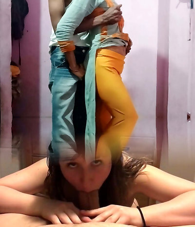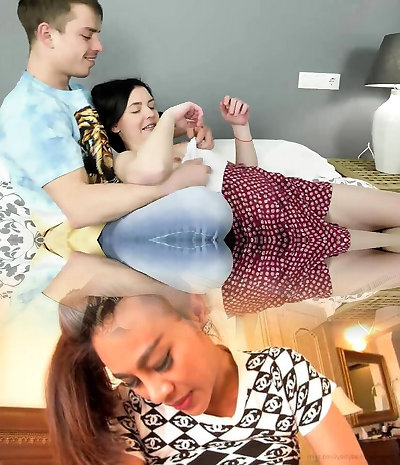 My parents are resting, so don't make noise! My mischievous sister licks my wet pussy in the kitchen! Angie Ortiz