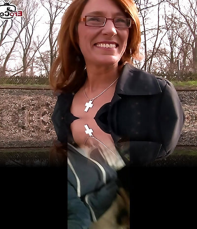 Crimson haired lady with glasses, Rachel Lynn was masturbating on the couch, before getting poked
