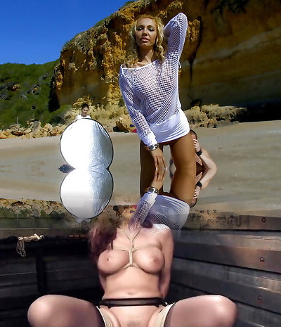 Bubbly ash-blonde cowgirl with fake tits gets her pussy fingered then hammered hard-core outdoors