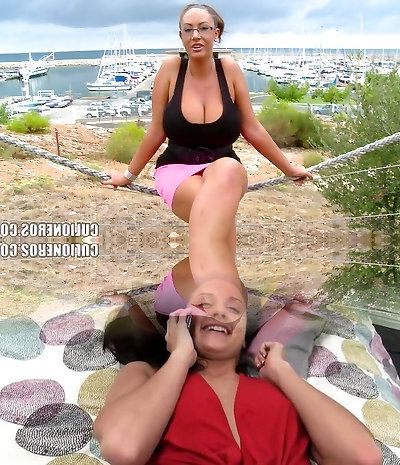 Big-breasted woman is doing everything with her udders