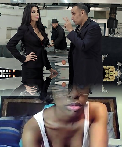 Crystal Rush caught stealing and humped by two men who give her cum
