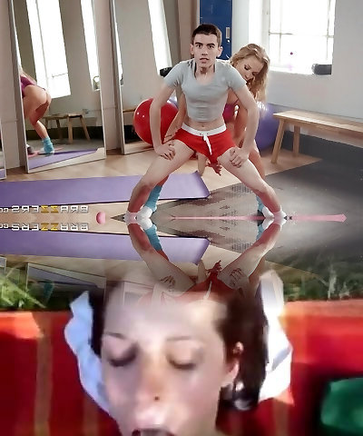 MILF slut Rebecca More works out on a rock-hard dinky and gets cum on tits