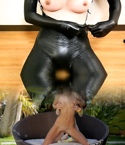 BOOBS strap-on LATEX food play video Fake Penis FUCKING raunchy COWGIRL messionary Restrain Bondage - Arya Grander and model Fetishaura