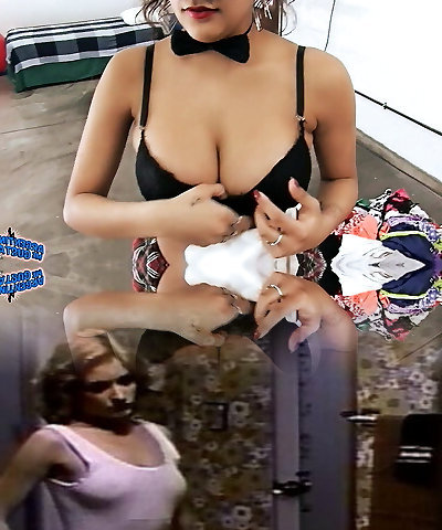 The woman is going to the resort. Trying on linen and dresses. The bitch revises her wardrobe. Regina Noir without panti