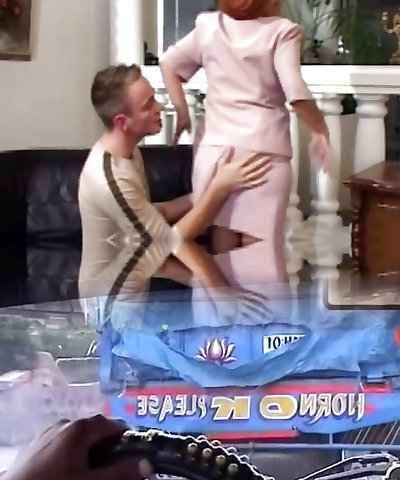 Pretty Huge-titted Redhead Stuck In the Doorway Agrees To Be Fucked From Both Sides To Get Free