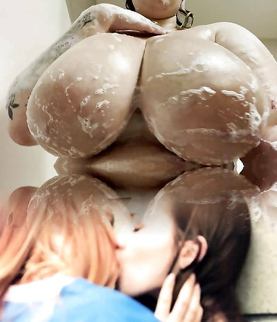Slutwife stepmommy Milky Mari do a lubed massage of her big pregnant tummy and huge lactating boobs!