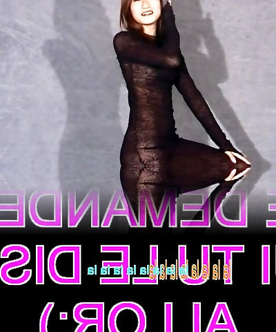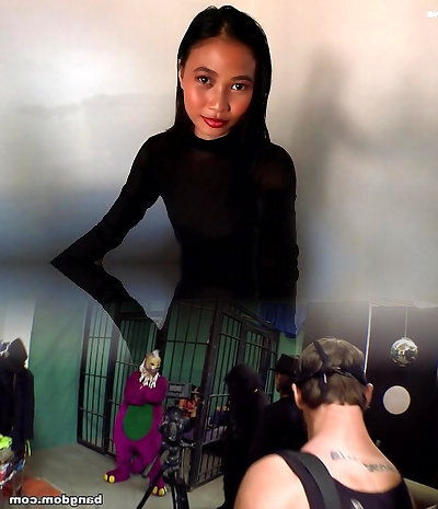Asian in a sheer dark-hued dress flashing tits and pussy