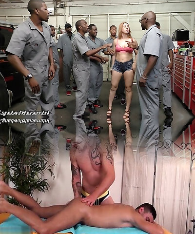 British big titted blonde Katie Kaliana gargles and fucks huge dick Mechanic Andy Mann in the repair garage