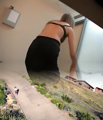 Neighbor In Bathrobe Without Panties And Bra Dries Washing Courtyard Neighbour Eyeing Out Window